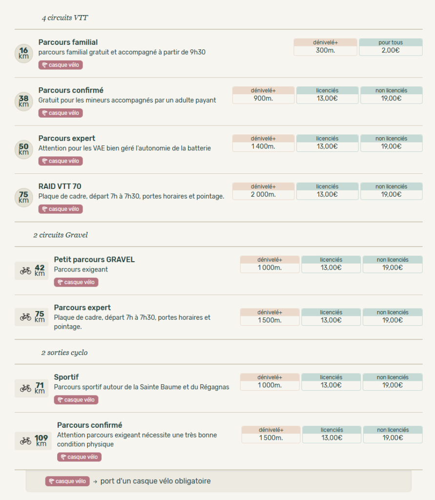 ATTENTION: Inscriptions en ligne obligatoire pour les parcours Raid VTT 70Km et Gravel 75Km